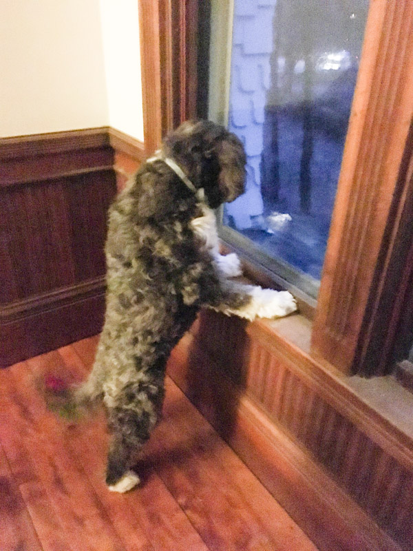 I had found old wear from nail marks on the windows and doors particularly the staircase landing, the side door window, and master bedroom door. When mom comes home Mia runs to these same various windows and puts her paws in the very same places making her not the first.