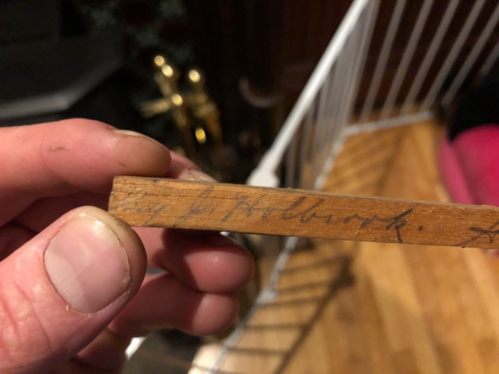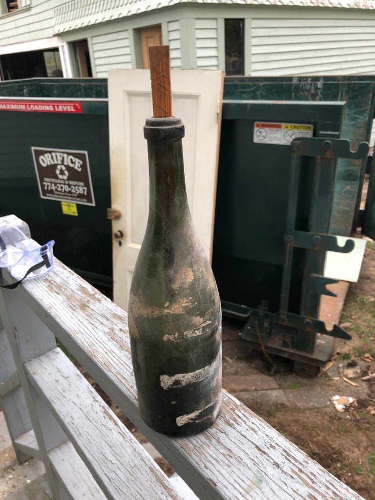 I will never forget when he called me over to see a wine/cider bottle behind a wall. We found a note in that bottle essentially a wood stick and written on it in pencil, “This bottle was opened the 1st of Sept 1885 by Jonathan Holbrook and Fabiola & Sons Builders” (the builder name may be incorrect doing my best).
