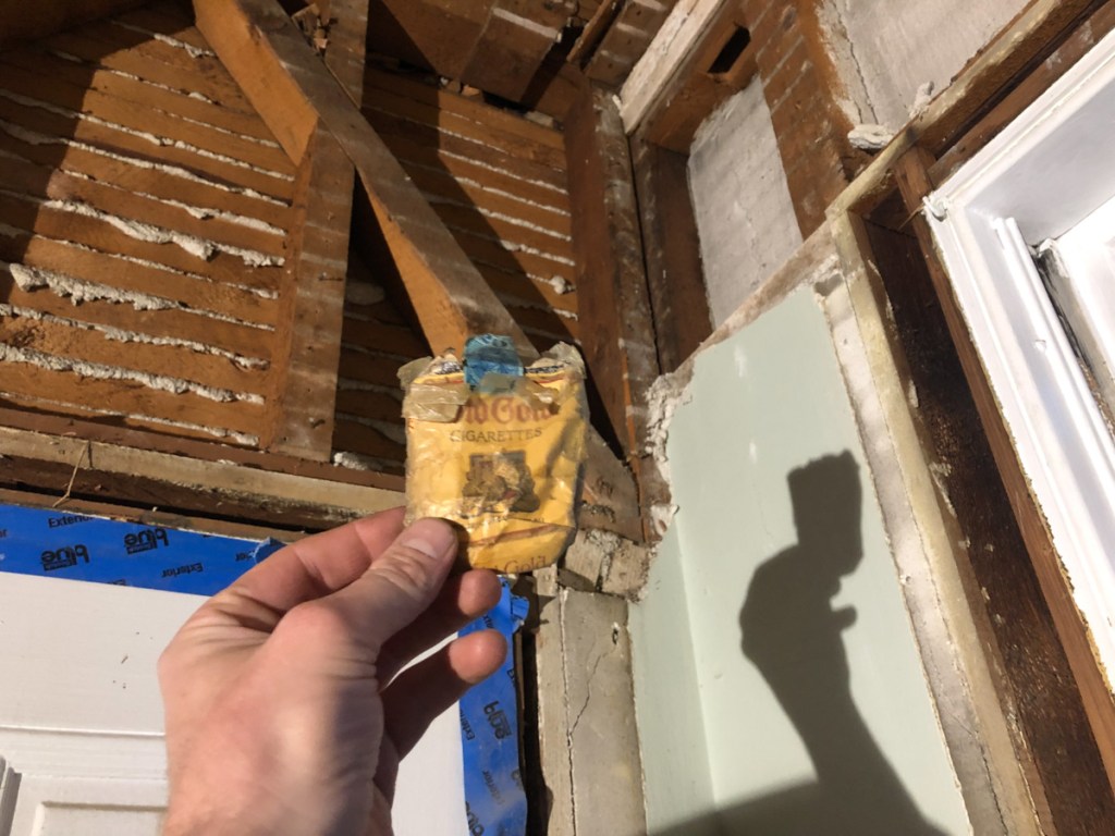 It was idyllic, I was in my moment in my dream victorian with no boundary this time it all had to go. I had seen so many shows and had my own projects too. But this time I was pealing back history. I was part historian as I saw where walls once stood, cast iron stoves once sat, windows long removed and gas lines for lighting long forgotten. I picked up playing cards, a mason jar, newspaper clippings, wall paper, old cigarette packages, and other valueless bits from the rubble each connecting me with the house. A contractor would care less, another house and another mess and all discarded. I tried to imagine who had these items and how they got there. Yes i kept it all.