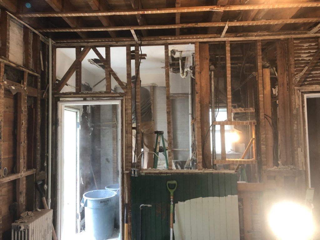 What does that mean for my family? Phases and this first phase would include 3 floors of every pipe, electrical, network, home-automation, gas, service, multiple AC runs, future electrical services, laundry relocation, well water storage/filtration, septic and steam heating adjustments to name many. I was the surgeon and would thread the needle and design so these necessities did not impact aesthetics. Be sure I was prepared all future possibilities before I closed up my 135 year old patient. Did my wife see that part of our project? NO. Neither would any average home owner. Fast forward to my plumber and I roughing in the house. We both agreed after days of ad-libbing ideas that had I missed the lesson of this story, had I just installed that kitchen then I would have been royally limited (I wont swear 2x) and screwed. Did I have bad news & stressful moments even with all this planning? Of course not it was all peaches and sweet tea…